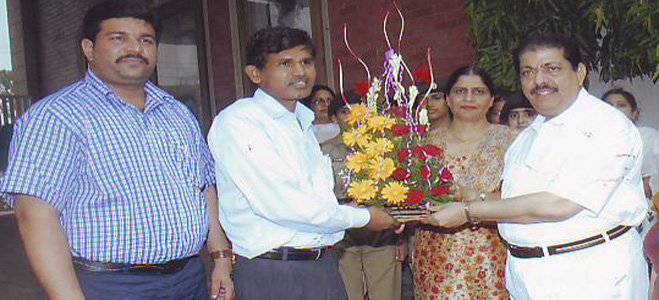 Regional Officer Sh. R. J. Khanderao being honoured by Sh. Rajesh Rudhra Chairman